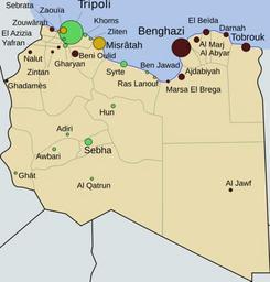 | Keywords: Libyan Uprising-fr(2011-03-11).svg Libyan uprising fr Libyan_Uprising svg Libyan_Uprising svg Rafy en Interchange88 Derivative work Pilkarz <span class signature-talk >talk</span> 22 56 11 March 2011 UTC 2011-03-11 Other versions/Libyan Uprising Traduction en français Simply Translated into French Pilkarz Libyan_Uprising svg Cc-zero Original upload log This image is a derivative work of the following images File Libyan_Uprising svg licensed with Cc-zero 2011-03-02T22 29 03Z Rafy 339x354 38414 Bytes <nowiki>oops</nowiki> 2011-03-02T22 11 41Z Rafy 339x354 35936 Bytes <nowiki>uploaded wrong one</nowiki> 2011-03-02T22 10 02Z Rafy 339x354 35936 Bytes <nowiki>More accurate city scales Updates </nowiki> 2011-03-02T20 57 26Z Magog the Ogre 339x354 36812 Bytes <nowiki> Brega Adjabiya and Bani Walid per the talk page</nowiki> 2011-03-02T11 12 39Z Rafy 339x354 35936 Bytes <nowiki>Colour tweaks Gharyan Sebrata Brega and Ajdabia under attack</nowiki> 2011-03-02T10 32 38Z Transparent 6lue 339x354 32868 Bytes <nowiki>Reverted to version as of 19 39 1 March 2011 it's called Tripoli </nowiki> 2011-03-02T10 18 48Z Giornorosso 339x354 32861 Bytes <nowiki>Ajdabiya contested</nowiki> 2011-03-02T10 17 00Z Giornorosso 339x354 32861 Bytes <nowiki>Gharyan captured by Ghaddafi</nowiki> 2011-03-01T19 39 14Z U5K0 339x354 32868 Bytes <nowiki>misrata in rebbel hands still </nowiki> 2011-03-01T19 28 17Z U5K0 339x354 32810 Bytes <nowiki>zawiya in rebel hands after repelling attacks</nowiki> 2011-03-01T12 21 03Z Rafy 339x354 32406 Bytes <nowiki>Black border makes light green more visible over a grey background </nowiki> 2011-03-01T12 04 56Z Rafy 339x354 31875 Bytes <nowiki>corrected position of khums and zliten added a better green as per discussion added grey border do distinguish overlapping cities aziziya and tripoli for example </nowiki> 2011-03-01T07 38 13Z Magog the Ogre 339x354 34210 Bytes <nowiki> kill red border per complaint on talk page</nowiki> 2011-03-01T03 51 03Z Rafy 339x354 33791 Bytes <nowiki>colours improve scales based on http //www world-gazetteer com/wg php x 1298950805 men glay lng en des gamelan geo -133 srt dpnn col abcdefghimoq msz 1500 this source</nowiki> 2011-03-01T03 20 06Z JasonAQuest 339x354 27052 Bytes <nowiki>restore city sizes</nowiki> 2011-03-01T02 26 10Z Rafy 339x354 31644 Bytes <nowiki>Tripoli to green and and Misrata and Zawia to yellow</nowiki> 2011-03-01T02 16 10Z Rafy 339x354 32189 Bytes <nowiki>Colourblind friendly updated situation Ghadamis and Bani Walid were never under opposition control </nowiki> 2011-02-28T20 46 05Z Gryffindor 339x354 28395 Bytes <nowiki>the large dots make reading the city names difficult also some are too small</nowiki> 2011-02-28T19 30 49Z Interchange88 339x354 27375 Bytes <nowiki>Reverted to version as of 03 36 28 February 2011 drive-by edit no reasons no discussion</nowiki> 2011-02-28T15 13 46Z Gryffindor 339x354 28395 Bytes <nowiki>Reverted to version as of 20 15 27 February 2011</nowiki> 2011-02-28T03 36 14Z JasonAQuest 339x354 27375 Bytes <nowiki>scale cities according to size</nowiki> 2011-02-27T20 15 42Z JasonAQuest 339x354 28395 Bytes <nowiki>neutral background</nowiki> 2011-02-27T17 36 21Z Rafy 339x354 54770 Bytes <nowiki>Using one colour for the map as per discussion</nowiki> 2011-02-27T17 06 02Z Rafy 339x354 54768 Bytes <nowiki>Colour tweaks Al Aziziya still controlled by Gaddafi </nowiki> 2011-02-27T14 48 05Z U5K0 338x354 57558 Bytes <nowiki>Al Zawiya liberated as per BBC Al Jazeera see article talk page </nowiki> 2011-02-27T14 22 17Z Rafy 338x354 56608 Bytes <nowiki>Bigger bullets</nowiki> 2011-02-27T11 00 26Z Rafy 387x354 58251 Bytes <nowiki>tweaks</nowiki> 2011-02-27T01 56 45Z Rafy 387x354 66921 Bytes <nowiki>corrections</nowiki> 2011-02-27T01 50 06Z Rafy 387x354 133950 Bytes <nowiki>saved as plain</nowiki> 2011-02-27T01 47 44Z Rafy 387x354 154560 Bytes <nowiki> en Situation as of 26/2/2011 own Rafy 2011-02-27 Libyan uprising</nowiki> Uploaded with derivativeFX Maps of the 2011 Libyan civil war SVG maps in French |