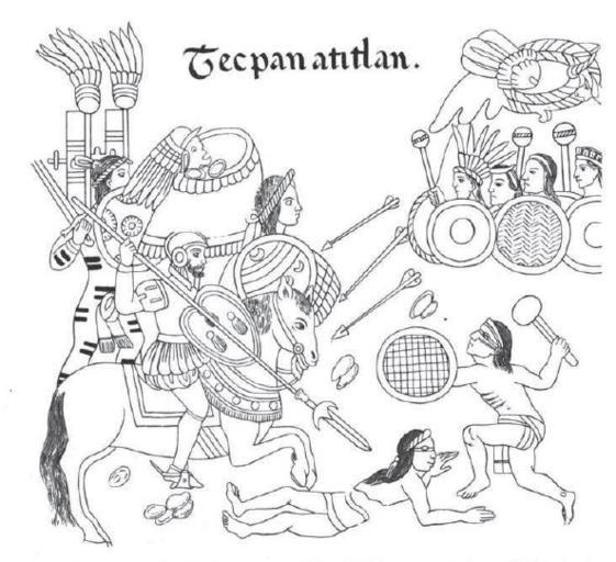 | Keywords: Lienzo de Tlaxcala Tecpan Atitlan.gif en Page from the 16th-century Lienzo de Tlaxcala reproduction from 1892 showing the Spanish conquest of Tecpan Atitlan Santiago Atitlán in Guatemala es Página del Lienzo de Tlaxcala del siglo XVI reproducción de 1892 que muestra la conquista de Tecpan Atitlan Santiago Atitlán en Guatemala century 16 Lienzo de Tlaxcala author Custom license marker 2013 03 26 PD-art-100 Lienzo de Tlaxcala Spanish conquest of Guatemala Uploaded with UploadWizard Santiago Atitlan |