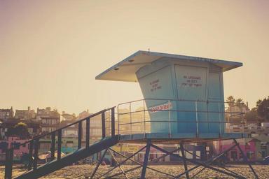 Keywords: lifeguard hut beach sand summer sunset sky