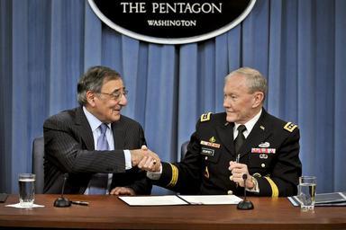 | Keywords: Lifting the Ban 2.jpg en Defense Secretary Leon E Panetta and Army Gen Martin E Dempsey chairman of the Joint Chiefs of Staff shake hands after signing a memo to lift the ban on women from serving in military combat roles as they address reporters at the Pentagon Jan 24 2013 2013-01-24 13 51 36 http //defense gov U S Department of Defense PD-USGov Uploaded with UploadWizard Leon Panetta in 2013 Martin E Dempsey Handshakes involving the military | ||||