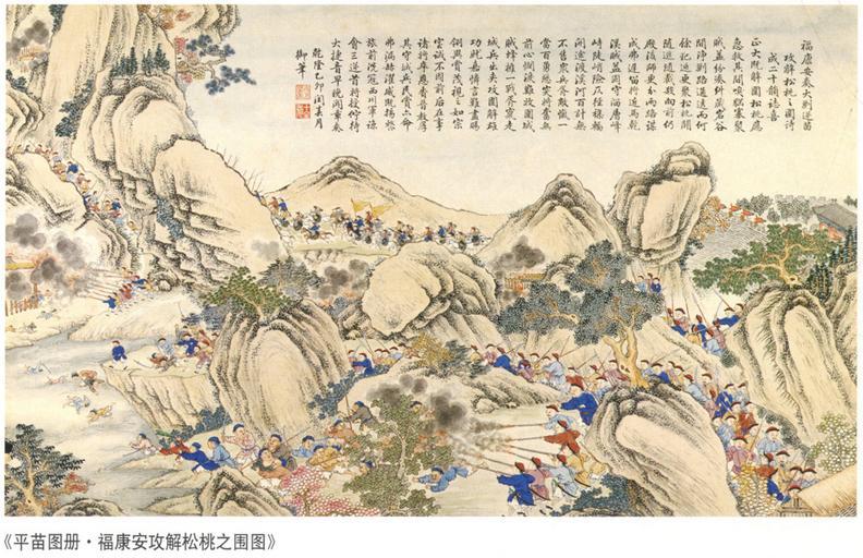 | Keywords: Lifting the Siege at Songtao.jpg en A scene of the Chinese Campaign against the Miao Hunan 1795 zh-hans å¹³å®šè‹—ç–†æˆ˜å½¹ä¹‹ä¸ ” ”æ”»è§£æ ¾æ¡ƒä¹‹å›´ http //www battle-of-qurman com cn/e/hist htm late XVIII century A collaboration between Chinese and European painters The Jesuit missionaries involved in producing the drawings in China were Giuseppe Castiglione Jean-Denis Attiret Ignace Sichelbart and Jean Damascene The engravings were executed in Paris under the direction of Charles-Nicolas Cochin of the Académie Royal at the Court of Louis XVI and the individual engravers include Le Bas Aliamet Prevot Saint-Aubin Masquelier Choffard and Launay PD-Art Military of Qing China Ten Great Campaigns Paintings of the Qing Dynasty |