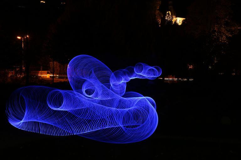 Keywords: light night blue lighting lights darkness fantasy image street lamp lightpainting flashlight fantasy led lamps bill spotlight reflection rays lens flare lamp spot farbenspiel movement lichtspiel color turn dynamics