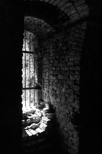 Keywords: light window building ruin architecture grid creepy shadow play black white atmosphere lighting lights shadow masonry behind mood facade caught imprisoned home