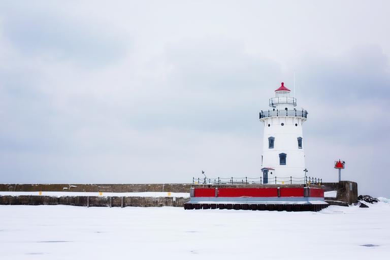 Keywords: lighthouse michigan white nautical winter snowy snow historic