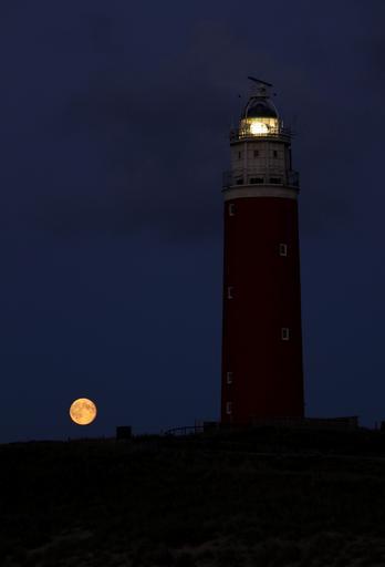 Keywords: lighthouse night evening moon illuminated idyllic tower mood