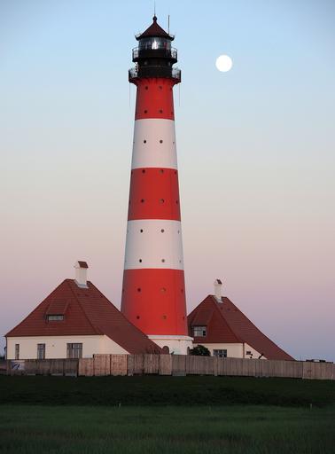 Keywords: lighthouse westerhever full moon nordfriesland wadden sea coast building signal tower striped watts daymark romance