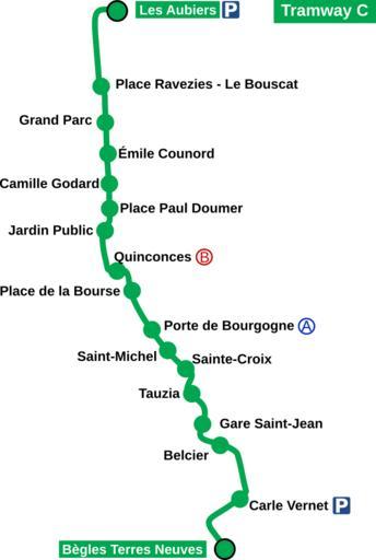 Keywords: Ligne C.svg Inkscape Atelier graphique Parcours de la ligne C du tramway de Bordeaux avec le logo Image Parking_icon svg Tranport map of the line C of the tramway of Bordeaux with the logo Image Parking_icon svg http //www infotbc com/ftp/FR_ligne/PlandetailleTRAMABC_31mai08 pdf 12 53 1 January 2007 UTC <span style color 003870; >R</span><span style color 4080aa; >ogilbert</span> - Updated by User Otourly with some correction by User Hektor Tram maps of Bordeaux