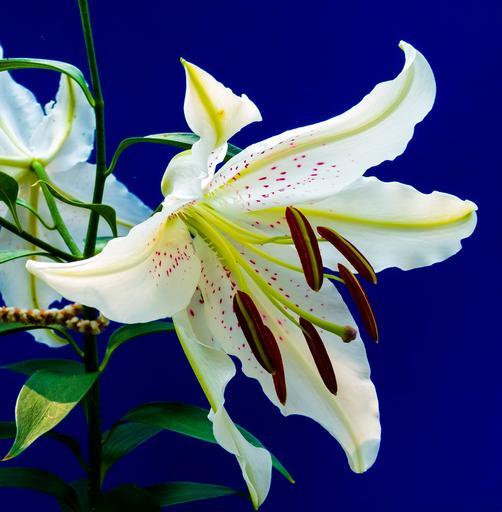 Keywords: lily blossom bloom flower white purple dots blossomed