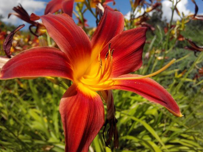 Keywords: lily flower flowers leaves in the summer of closeup nature orange sheet bloom july beautiful flower flower bed landscape decoration botanical garden yellow red spring garden flower