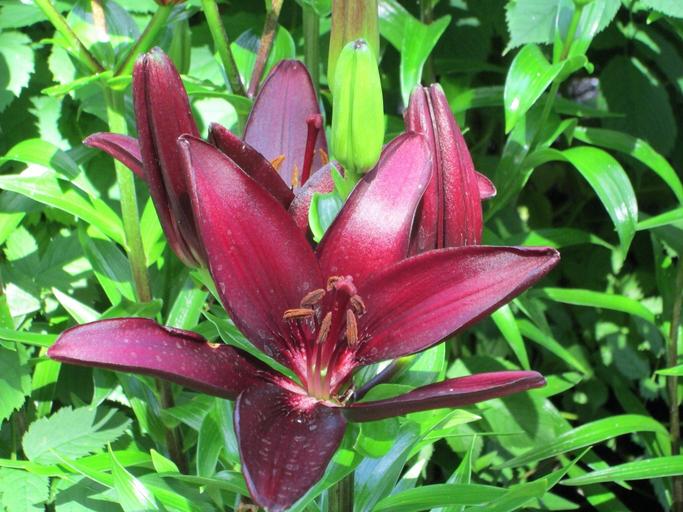 Keywords: lily purple daylily flower bloom petals maroon plant botany blooming growing
