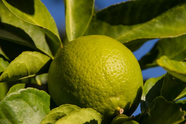 Keywords: lime fruit tree leaves green growing ripe citrus fresh healthy