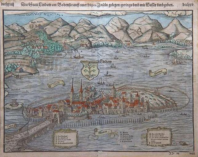 | Keywords: Lindau im Bodensee alte Ansicht.jpg Lindau im Bodensee nicht näher bezeichnete alte Ansicht bitte Beschreibung nachtragen sofern bekannt Nachträglich kolorierter Holzschnitt aus Sebastians Münsters Cosmographia die zwischen 1544 und 1621 in Basel in zahlreichen Ausgaben erschien Die Ansicht von Lindau ist in vielen Ausgaben enthalten Die Seitenzahlen 774-775 entsprechen z B der Abbildung auf Seiten 774-775 der Ausgabe von 1588 die mit dem Titel Cosmographey erschien PD-Art Source http //www auction de/ History of Lindau Bodensee Lake Constance in art Images by Nagel Auktionen Cosmographia Artworks missing infobox template |