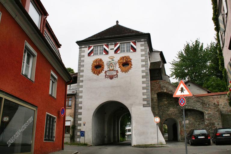 Keywords: Lindauertor.jpg Lindauer Tor mit teilen der Stadtmauer und des Wehrgangs own 2008-05-22 Mrilabs Lindauer Tor Memmingen Coats of arms in Memmingen