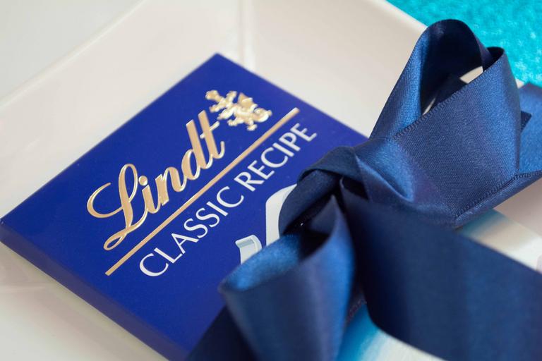 Keywords: lindt chocolate chocolate bar ribbon still life blue milk chocolate