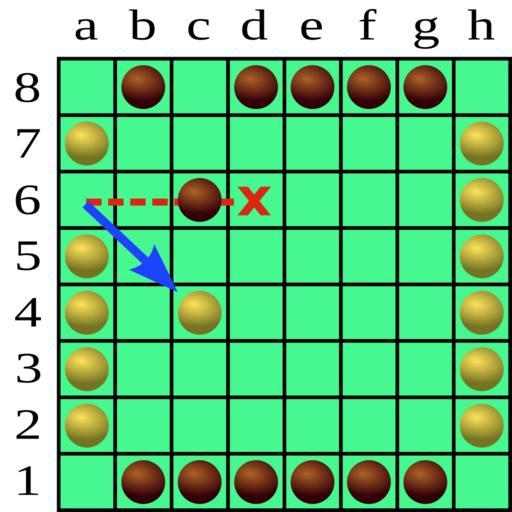 | Keywords: Lines of Action move 01.svg Schéma explicatif de Lines of Action un jeu de Claude Soucie paru en 1988 Image SVG réalisée avec Inkscape par François Haffner et placée dans le domaine public Own 2006-08-24 User François Haffner on http //fr wikipedia org fr wikipedia Lines of Action Files by User François Haffner from fr wikipedia SVG board games |
