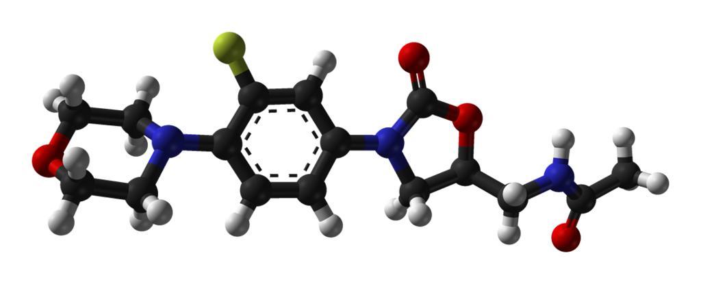 | Keywords: Linezolid-from-xtal-2008-3D-balls.png Ball-and-stick model of the linezolid molecule C<sub>16</sub>H<sub>20</sub>FN<sub>3</sub>O<sub>4</sub> as found in the crystal structure X-ray diffraction data from http //dx doi org/10 2116/analscix 24 x43 Anal Sci X 2008 24 x43-x44 Model constructed in http //www crystalmaker com/ CrystalMaker 8 1 Image generated in http //accelrys com/products/discovery-studio/visualization/discovery-studio-visualizer html Accelrys DS Visualizer Own 2009-05-18 Ben Mills Benjah-bmm27 Images by Ben Mills Linezolid Ball-and-stick models |