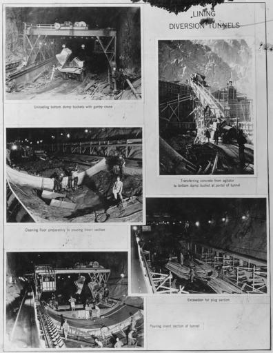 Keywords: Lining Diversion Tunnels - NARA - 293869.jpg Scope and content Photograph from Volume Two of a series of photo albums documenting the construction of Hoover Dam Boulder City Nevada General notes This is a compilation of 5 photographs It bears an ink stain in the upper center of the panel 293869 Local identifier Department of the Interior Bureau of Reclamation Engineering and Research Center 05/18/1981 - 03/04/1988 NARA's Rocky Mountain Region Denver NRGA Building 48 Denver Federal Center West 6th Avenue and Kipling Street Denver CO 80225-0307 1932 Record group Record Group 115 Records of the Bureau of Reclamation 1889 - 2008 Record group ARC 444 Photograph albums compiled 1903 - 1972 Series ARC 293611 File unit File unit ARC Variant control numbers NAIL Control Number NRG-115-CONSTPHO85006-BC21738 Other versions <gallery> File Lining Diversion Tunnels - NARA - 293869 tiff tif File Lining Diversion Tunnels - NARA - 293869 jpg jpg </gallery> NARA-cooperation PD-USGov Construction of the Hoover Dam |