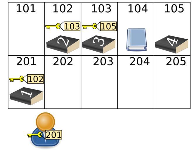| Keywords: Linked list post office box analogy 3.svg en The post office box analogy for a linked list Suppose Alice is a spy who wishes to give a codebook to Bob by putting it in a post office box and then giving him the key However the book is too thick to fit in a single post office box so instead she divides the book into two halves and purchases two post office boxes In the first box box 201 she puts the first half of the book and a key to the second box and in the second box box 102 she puts the second half of the book She then gives Bob bottom a key to the first box Derived from public domain works File Paperback book black gal svg File Public key shared secret svg File Emblem-person-blue svg 2011-06-14 Linked_list_post_office_box_analogy svg 2011-08-27 10 12 UTC Linked_list_post_office_box_analogy svg Dcoetzee derivative work Pluke <span class signature-talk >talk</span> extended to show 3 objects Linked_list_post_office_box_analogy svg Cc-zero Original upload log This image is a derivative work of the following images File Linked_list_post_office_box_analogy svg licensed with Cc-zero 2011-06-14T21 26 48Z Dcoetzee 224x410 34755 Bytes <nowiki></nowiki> Uploaded with derivativeFX Linked lists |