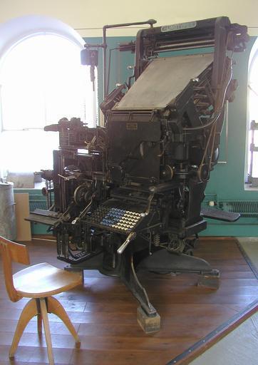 | Keywords: Linotype typesetting machine.JPG en Linotype typesetting machine Manufactured in New york Used in Eskilstuna until 1987 Photo taken at Eskilstuna stadsmuseum city museum in Eskilstuna Sweden sv Linotype sättmaskin foto taget på Eskilstuna stadsmuseum Tillverkad i New York Den användes på Eskilstuna Offset AB fram till 1987 för texter till främst böcker och reklambroschyrer I en sådan här maskin kunde man sätta sex-sju rader per minut Det var oerhört snabbt jämfört med den tid det tog att sätta samma text för hand Maskinen användes för brödtext medan rubriker sattes för hand Så här går det till När man trycker på tangenterna glider matriser ner i en hållare som samlar ihop dem till ord och meningar Matriserna är små gjutformar till bokstäver som fylls med flytande varmt bly Textraderna gjuts i maskinens vänstra del Efter gjutningen förs matriserna tillbaka till magasinet och återanvänds till nästa rad Det finns ungefär 90 bokstäver och tecken i ett magasin De specialtecken som inte finns plockar sättaren i manuellt När rader med meningar för en hel sida har satts samman läser man korrektur Därefter är det dags för tryckaren att ta vid Text enligt informationsskylt på museet own AlphaZeta 2010-08-28 Linotype Eskilstuna stadsmuseum |