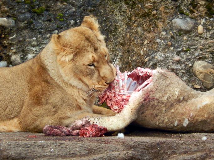 Keywords: lion eat cat zoo animal nature hunting animal world