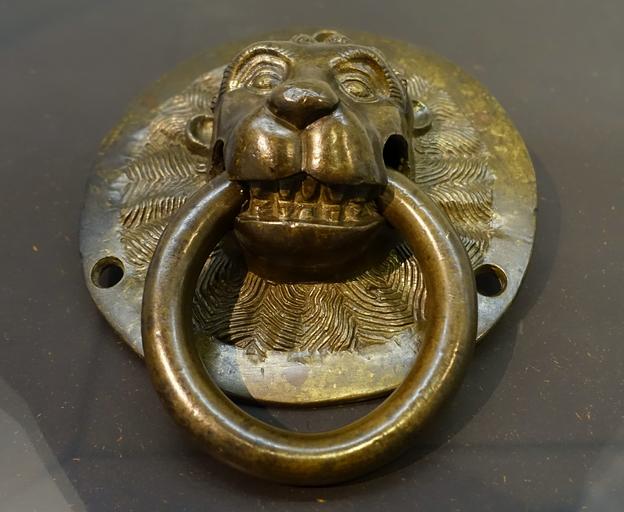 | Keywords: Lion head door puller from the Church of St. Lambertus in Erkelenz, Lower Rhine Valley, 1250-1300, bronze - Museum Schnütgen - Cologne, Germany - DSC00309.jpg en Lion head door puller from the Church of St Lambertus in Erkelenz Lower Rhine Valley 1250-1300 bronze - in the collection of the Museum Schnütgen Exhibited in the Rautenstrauch-Joest-Museum - Cologne Germany 2015-11-29 09 44 15 own Daderot other versions PD-old-100 cc-zero Metalwork in Museum Schnütgen Lion heads as doorknobs St Lambertus Erkelenz |