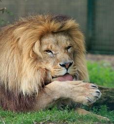Keywords: lion male close-up portrait licking licking paw paw tongue cat feline big wild wildlife handsome beautiful photo image