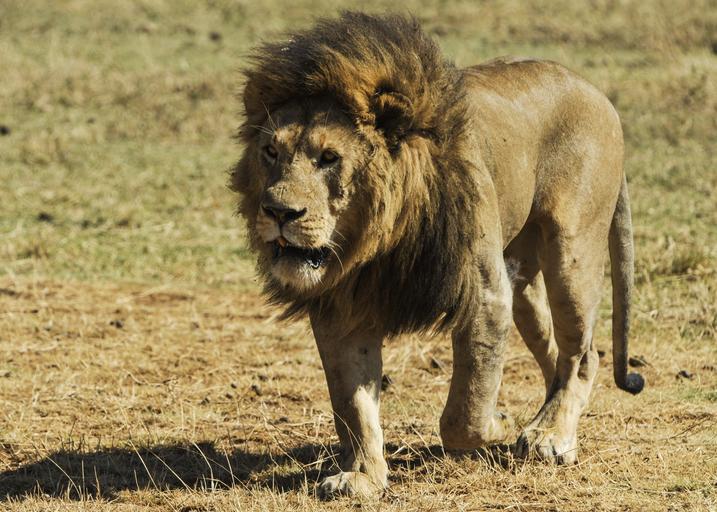 Keywords: lion wild predator big cat mane walking male wildlife serengeti safari tanzania africa mammal feline fur carnivore king strength