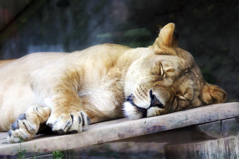Keywords: lioness animal the zoo košice slovakia sleep the head of the