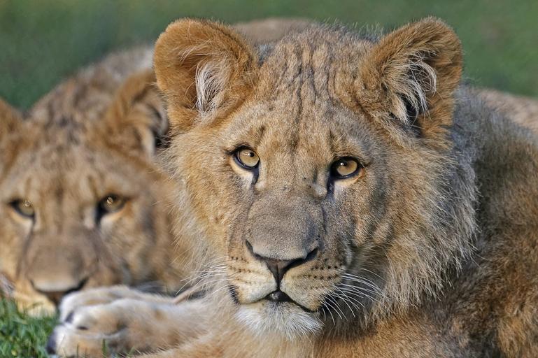 Keywords: lions portrait cats felines predator big wildlife zoo looking reclining resting profile hunters heads nature