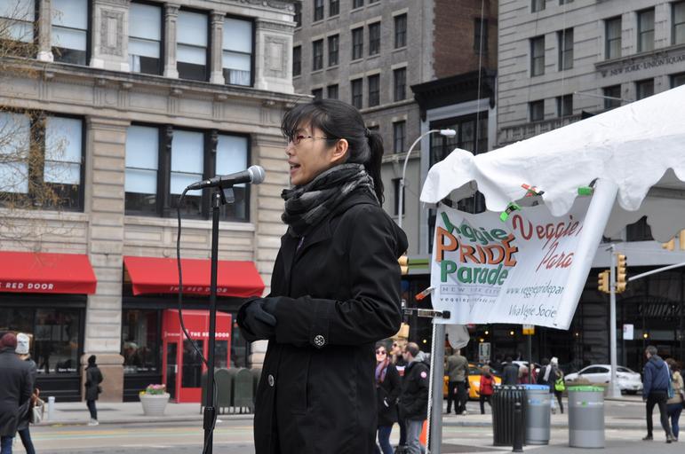 | Keywords: veggie pride parade nyc veggieprideparadenyc nyc parade nycparade nyc parade vegan vegetarian compassion animal rights animalrights animal welfare animalwelfare healthy living healthyliving low cholesterol lowcholesterol vivavegie society vivavegiesociety pamela rice pamelarice 101 reasons why i'm a vegetarian 101reasonswhyimavegetarian vegan outreach veganoutreach vegan advocacy veganadvocacy meatless diet meatlessdiet meat is murder meatismurder outdoor Liqin Cao, speaks, 2016 NYC Veggie Pride Parade Liqin Cao is Vice President of United Poultry Concerns. After receiving a Master's degree in Computer Science, she found her passion in advocating for animals. Fluent in both English and Chinese, she has translated Live Poultry Market literature to outreach to the Chinese community in New York City and San Francisco. A strong believer in changing people's attitude toward animals through public education, she leaflets and tables for United Poultry Concerns in public forums, festivals and conferences. Over the past 20 years, Liqin has become a valuable contributor to the mission of United Poultry Con- cerns, promoting the compassionate and respectful treatment of domestic fowl. Liqin Cao, speaks, 2016 NYC Veggie Pride Parade Liqin Cao is Vice President of United Poultry Concerns. After receiving a Master's degree in Computer Science, she found her passion in advocating for animals. Fluent in both English and Chinese, she has translated Live Poultry Market literature to outreach to the Chinese community in New York City and San Francisco. A strong believer in changing people's attitude toward animals through public education, she leaflets and tables for United Poultry Concerns in public forums, festivals and conferences. Over the past 20 years, Liqin has become a valuable contributor to the mission of United Poultry Con- cerns, promoting the compassionate and respectful treatment of domestic fowl. |
