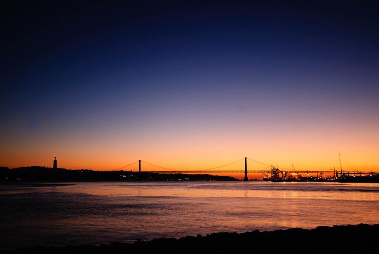 Keywords: lisbon ponte 25 de abril bridge port abendstimmung