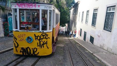Keywords: lisbon tram vernacular rail graffiti street portugal europe transport tourism travel transportation portuguese train railway streetcar electric lpublic downtown vehicle trolley yellow