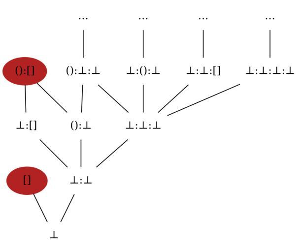 | Keywords: List domain graph.svg en Partial graph of <math>\sqsubseteq</math> for lists of units 2014-03-20 00 48 43 own Svick This file is a corrected version of wikibooks File List-graph png It was generated using the following dot code <source lang dot > graph rankdir BT ; bgcolor transparent ; node shape plaintext fillcolor firebrick color firebrick ; b label Š¥ ; e label shape ellipse style filled ; bb label Š¥ Š¥ ; ub label Š¥ ; be label Š¥ ; bbb label Š¥ Š¥ Š¥ ; ue label shape ellipse style filled ; ubb label Š¥ Š¥ ; bub label Š¥ Š¥ ; bbe label Š¥ Š¥ ; bbbb label Š¥ Š¥ Š¥ Š¥ ; ellip1 label ¦ ; ellip2 label ¦ ; ellip3 label ¦ ; ellip4 label ¦ ; b -- e; b -- bb; bb -- ub; bb -- be; bb -- bbb; ub -- ue; ub -- ubb; be -- ue; bbb -- ubb; bbb -- bub; bbb -- bbe; bbb -- bbbb; ubb -- ellip1; bub -- ellip2; bbe -- ellip3; bbbb -- ellip4; </source> cc-zero Uploaded with UploadWizard Hasse diagrams |