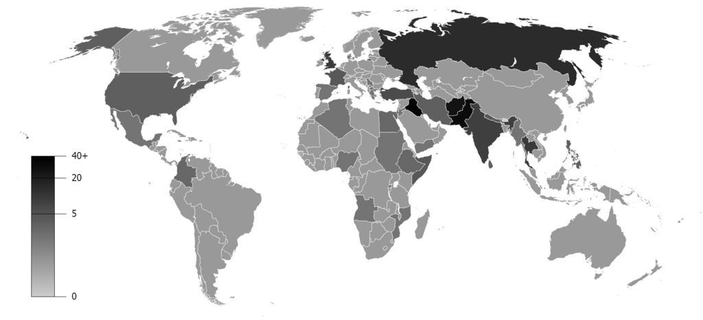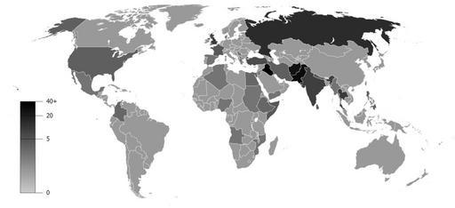 Keywords: List of terrorist incidents, 2010 map.png en English Number of terrorist incidents for 2010 January 1 2010 - May 23 2010 Based on the Wikipedia List of terrorist incidents 2010 EverythingHappens4AReason 23 May 2010 15 25 GunnMap The data January 1 - May 23 2010 wikitable Iraq 70 - Pakistan 53 - Afghanistan 43 - Russia 21 - United Kingdom 13 - Thailand 13 - India 11 - Turkey 7 - Israel 6 - France 4 - Somalia 4 - Nepal 4 - USA 3 - Sri Lanka 3 - Greece 3 - Philippines 3 - Iran 3 - Egypt 2 - Colombia 2 - Rwanda 2 - Ethiopia 2 - Denmark 1 - Angola 1 - Jordan 1 - Abkhazia 1 - Serbia 1 - Mozambique 1 - Mexico 1 - Nigeria 1 - Sudan 1 - Myanmar 1 - Yemen 1 - Algeria 1 - Republic of Macedonia 1 - Total 283 Terrorist incidents in 2010