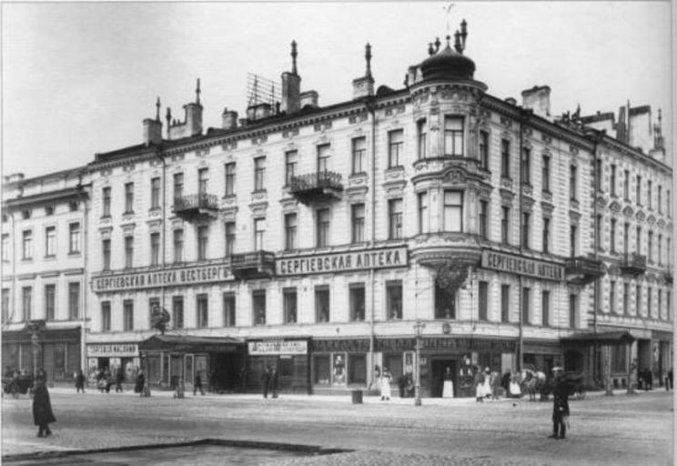 | Keywords: Liteiny 5 Chaikovskogo 19 Bulla.jpg Liteyny 5 - Tchaikovsky 19 - Sergievskaia drugstore Architect - Christian Tatzky Photo by Karl Bulla The building was mostly ruind in 2007 http //www encspb ru/image/2803985685/1 1900-th Creator Karl Bulla Karl Bulla the author of this photo had died in 1929 so this image is s in the public domain because its copyright has expired PD-old Liteyny 5 - Tchaikovsky 19 Photographs by Karl Bulla Former buildings in Russia Saint Petersburg in the 1900s | ||||