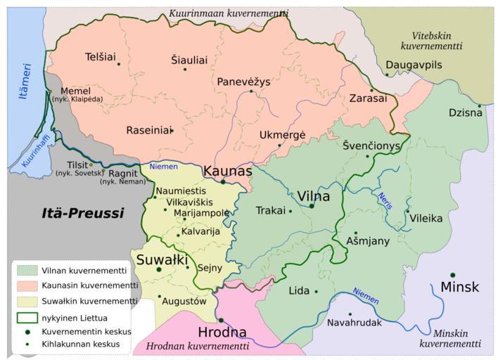 MAKE A MEME View Large Image Lithuania-1867-1914-FI.svg en Map of Lithuania in Russian Empire 1867-1914 Names of each governorate fi kuvernementti and their subdivision i e uyezd fi kihlakunta ujesti using current Finnish fi Liettua Venäjän imperiumin aikana vuosina ...