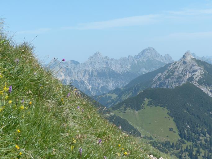 Keywords: litnisschrofen krinnenspitze hike mountain hike hiking more mountains alpine mountain meadows flower meadows trail vilsalpseeberge allgäu alps tannheim group red flüh gimpel kölle tip trowel top schartschrofen