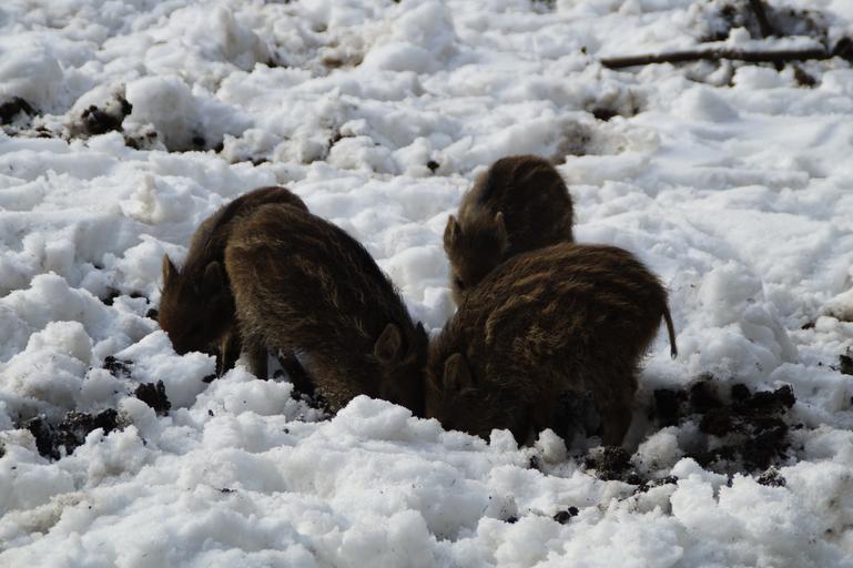 Keywords: little pig wild boars children deer park young child piglet head drawing dig pig digging around foraging snow cold wintry winter brothers and sisters litter