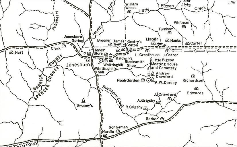 Keywords: Little Pigeon Creek Community map.jpg en Little Pigeon Creek Community map unknown National Park Service - http //www nps gov/nr/twhp/wwwlps/lessons/126libo/126locate2 htm National Park Service other versions PD-USGov Uploaded with UploadWizard Spencer County Indiana Lincoln Boyhood National Memorial |