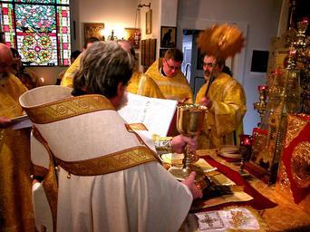 | Keywords: Liturgy St James 8.jpg St Jakobus Liturgie Die russisch orthodoxe Kirche in Duesseldorf Liturgy of St James Russian Orthodox Church in Duesseldorf Liturgia de San James La Iglesia ortodoxa rusa en Düsseldorf Liturgie de rue James L'Eglise orthodoxe russe à Dusseldorf Литу гия святого Иакова б ата Господня Це ковь Пок ова П есвятой Бого одицы в Дюссельдо фе own 2010-01-10 Velopilger Liturgy of St James Orthodox priests Orthodox deacons Orthodox chalices Tabernacles Hand fans Liturgical books Orthodox altars Altars in Germany Omophorion Orthodox Church in Düsseldorf 2010 in Düsseldorf Liturgical wine |