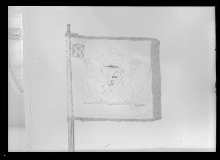 | Keywords: Livstandar vid Karelen och Viborgs läns kavalleri - Livrustkammaren - 51743.tif Fredrik I av Sverige plain text Från Fredrik I s tid Duk av dubbel vit sidendamast sammansydd av två våder Mönsterrapport på damasten h 470 mm b 245 mm Dekor i applikationsbroderi lika på båda sidor med silke och påsytt siden svenska riksvapnet med Hessen-Kassels vapen i hjärtskölden Såsom sköldhållare två dubbelsvansade med slutna kronor krönta lejon med framåtvända ansikten stående på en 550 mm hög markbit Lejonen applicerade i vit atlas med konturbroderi i vitt och brunt silke Den stora slutna kronan fodrad med sammet ursprungligen röd numera brun Riksvapnet omges av ett vitt band vapnets botten av blå atlas; i övre inre hörnet ett 175 mm högt och 113 mm brett vapen med rött fält varpå två mot varandra vända väpnade armar mellan vilka en öppen krona Karelens vapen genomgående mycket blekta förutom hjärtvapnets mörkblå botten Karelens damast botten karmosinröd Frans enkel drejad av gult silke Duken fäst med tre rader tennlickor på svartkantade gula band Stång av trä kannelerad Löpande bärring Saknar klack Järnbeslagen Holk av förgylld mässing profilerad original caption - 1720 1728 silk Färg gul brun vit material silke - wood - brass - iron size mm 710 size mm 705 size mm 78 frans size mm 94 holk size mm 3480 stång total size mm 475 våd övre size mm 240 våd nedre LRK place of origin original filename LN_B00926_003806 53559 inventory number LRK 17005 51743 CC0 Livstandar vid Karelen och Viborgs läns kavalleri - Livrustkammaren - 51743-negative tif <gallery caption Different images of same object > File Livstandar vid Karelen och Viborgs läns kavalleri - Livrustkammaren - 26620 tif File Livstandar vid Karelen och Viborgs läns kavalleri - Livrustkammaren - 35181 tif File Livstandar vid Karelen och Viborgs läns kavalleri - Livrustkammaren - 17550 tif </gallery> Heraldic flags Media contributed by LSH unmatched material Media contributed by LSH dim-with multiple size templates Media contributed by LSH 2013-10 |