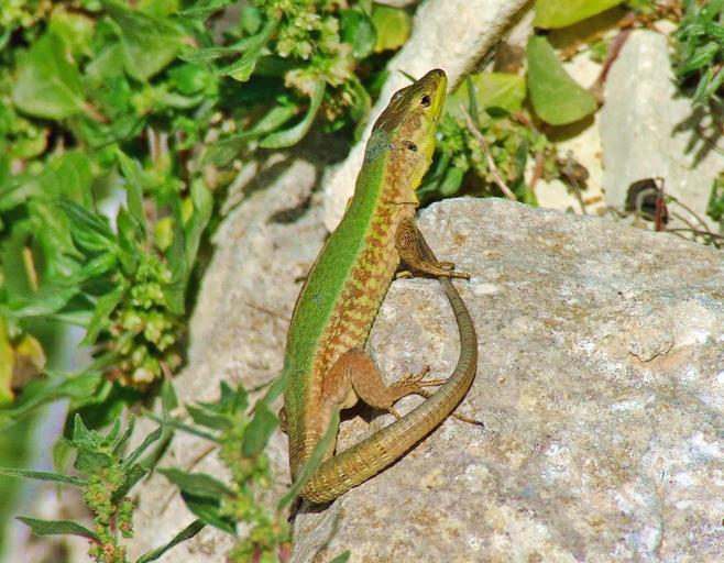 Keywords: lizard colourful colour color reptile podarcis green brown animal nature wildlife tropical vertebrate exotic natural rock eye skin creature tail fauna scale predator
