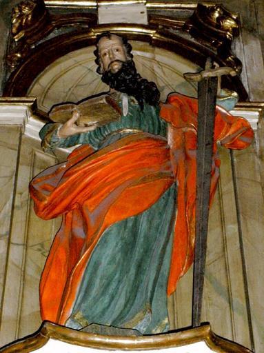 Keywords: Llodio - San Pedro de Lamuza 14.JPG en Talla de San Pablo en la iglesia parroquial de San Pedro de Lamuza de Llodio Álava País Vasco España own Zarateman 2010-05-02 Church of San Pedro de Lamuza Llodio Church sculptures in Álava-Araba Statues of Saint Paul in Spain cc-zero