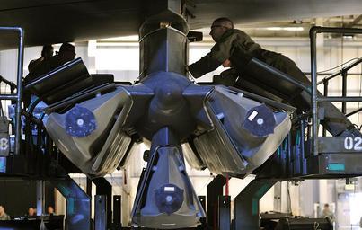 | Keywords: Loading three AGM-86 ALCMs.jpg AGM-86 ALCM on a B-52 Stratofortress at Minot Air Force Base 2014-01-23 12 23 42 http //www minot af mil/news/story asp id 123400731 Senior Airman Kristoffer Kaubisch or Senior Airman Andrew Crawford PD-USGov Uploaded with UploadWizard Cruise missiles Boeing B-52H Minot Air Force Base |