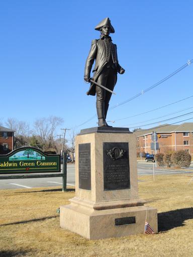 | Keywords: Loammi Baldwin by Herbert Adams - DSC04132.JPG en Loammi Baldwin memorial by Herbert Adams 1858-1945 Woburn Massachusetts USA This statue was created in 1917 and hence is now in the public domain According to the Smithsonian Institution's SIRIS system On bottom rear of sculpture near base HERBERT ADAMS SC/1917 Marked bottom left edge rear of base CAST BY/ROMAN BRONZE WORKS N Y On bronze plaque on front of base in raised letters LOAMMI BALDWIN/PATRIOT/PUBLIC OFFICIAL/BORN JANUARY 21 1745 N S /IN NORTH WOBURN/MASSACHUSETTS/DIED OCTOBER 20 1807 On bronze plaque on east side of base ONE OF THE PROPRIETORS/AND/A PRINCIPAL CONSTRUCTOR/OF THE MIDDLESEX CANAL/A MEMBER OF/THE COMMITTEE TO SIGN/THE PAPER MONEY OF/MASSACHUSETTS BAY COLONY/FIRST SHERIFF OF/MIDDLESEX COUNTY/UNDER THE STATE CONSTITUTION/A LEADER OF AFFAIRS/IN WOBURN On bronze plaque on west side of base A PARTICIPANT WITH THE/RANK OF MAJOR/IN THE BATTLES OF/LEXINGTON AND CONCORD/A COLONEL OF/THE 26TH REGIMENT OF/THE CONTINENTAL ARMY/WITH GENERAL WASHINGTON/DURING THE OCCUPATION/OF NEW YORK/AND IN THE BATTLE/OF TRENTON On bronze plaque on base of base BALDWIN APPLE/DISSEMINATOR OF THE APPLE/IN HONOR OF HIM CALLED/THE BALDWIN/WHICH PROCEEDED FROM A TREE/ORIGINALLY GROWING WILD/ABOUT TWO MILES NORTH/OF THIS MONUMENT signed Founder's mark appears 2012-02-12 own Daderot cc-zero Uploaded with UploadWizard Loammi Baldwin by Herbert Adams Roman Bronze Works |