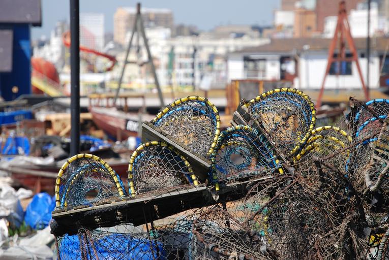 Keywords: lobster pots beach seafood lobster sea fishing pot net industry trap crab coastal netting pots