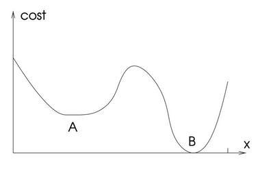 Keywords: Local-search-plateau.svg An example of plateau one variable x If local search reaches point B it will be unable to find a cost-decreasing move and stucks there even if this is not a solution while one exists at point A Constraint satisfaction 2006-02-21 own assumed Tizio