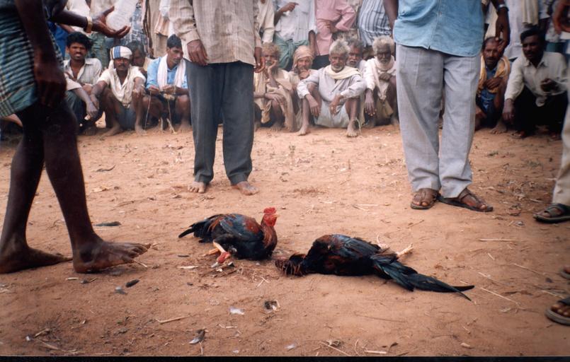| Keywords: Local village 'Illegal cockfights' in India..jpg http //cockfightinglegalandillegal blogspot com/ en An illegal cockfight in the outskirts of Bangalore city in Kalkere village on sunday 24-6-2001 These cockfights are held by villagers the cockpit being a open field around which the villagers form a circle The Battlecocks fight in the middle of this circle Own Rudolph A furtado 1995-05-30 Cockfighting in India | ||||