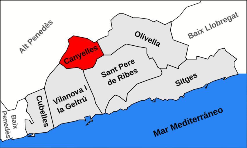 Keywords: Localización de Canyelles en Garraf.svg Localización de Canyelles en Garraf / Lage von Canyelles in der Comarca Garraf Localització_de_Sitges_respecte_del_Garraf svg 2010-01-14 Joan M Borràs ~~Wela49 Maps of Garraf Canyelles