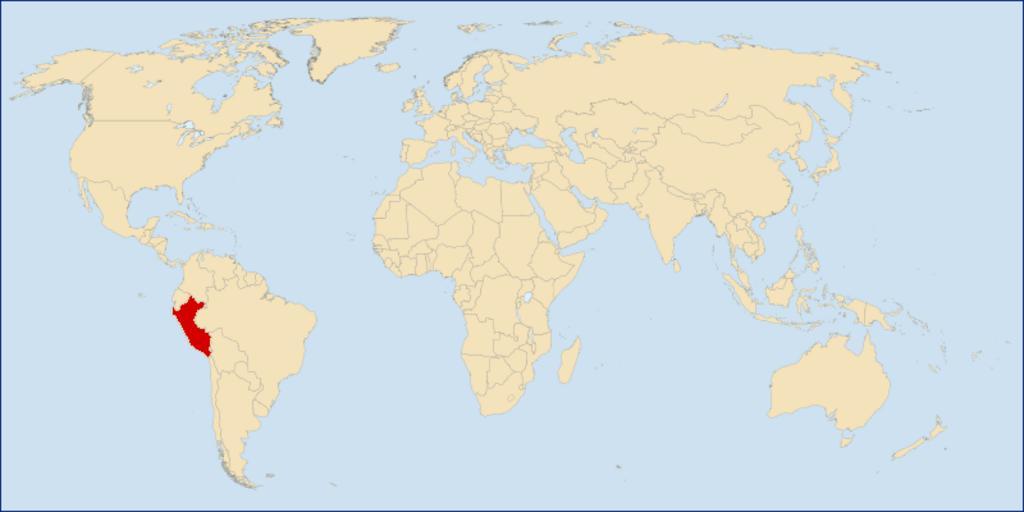 Keywords: LocationPeru(World).png en Location of Peru in the World es Ubicación del Perú en el Mundo own Wikiperuvian 2011-02-07 Cc-zero Locator maps of Peru
